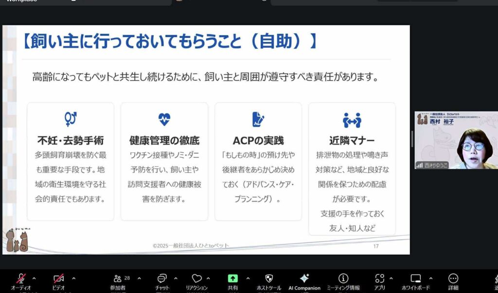 先日、「取り残されたペット問題」をテーマに、90分のセミナーを開催いたしました。